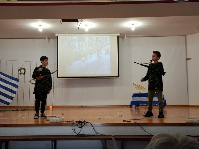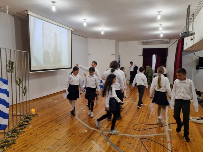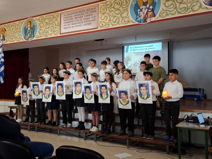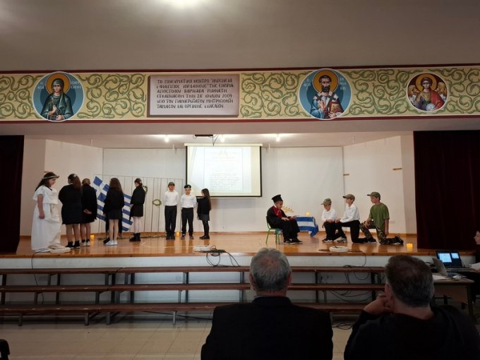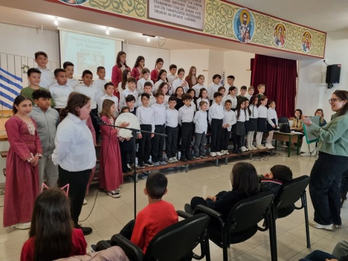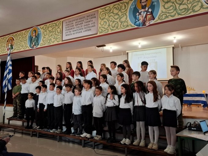 Την Πέμπτη 31 Μαρτίου πραγματοποιήθηκε στο σχολείο μας ενδοσχολικός εορτασμός με αφορμή την εθνική επέτειο της έναρξης του Εθνικοαπελευθερωτικού Αγώνα της ΕΟΚΑ το 1955. Η μέρα ξεκίνησε με την έπαρση των σημαιών στην αυλή του σχολείου. Στη συνέχεια,οι μαθητές και οι μαθήτριες των Γ΄, Δ΄και Ε΄τάξεων τίμησαν τους ήρωες του αγώνα με δραματοποιημένες σκηνές, πατριωτικά τραγούδια, προσκλητήριο πεσόντων και παραδοσιακούς χορούς. Την εκδήλωση παρακολούθησαν τα υπόλοιπα παιδιά του σχολείου, τα παιδιά του νηπιαγωγείου και γονείς. Στο τέλος όλοι στάθηκαν με σεβασμό για την ανάκρουση του εθνικού ύμνου. Ήταν μια συγκινητική και διδακτική εκδήλωση που μας υπενθύμισε το χρέος μας να διατηρούμε ζωντανή τη μνήμη των ηρώων της πατρίδας μας.