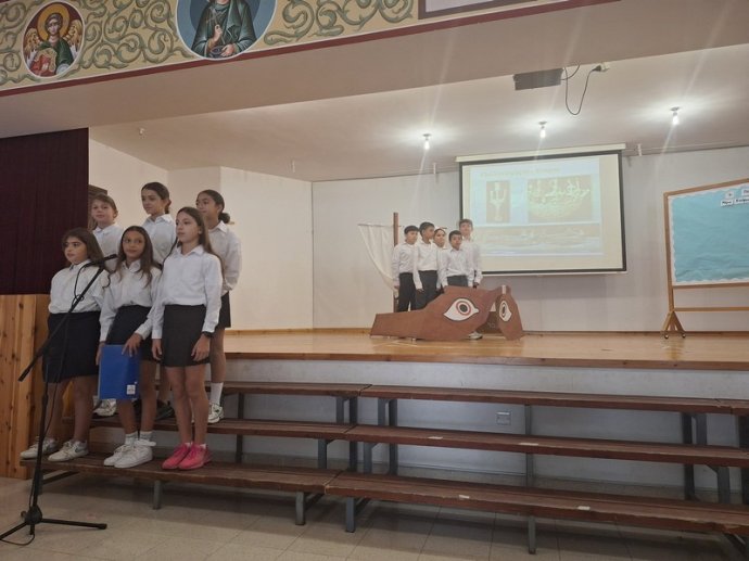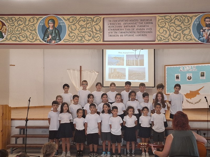 Ξεκίνημα είχαν τη δημιουργία του νησιού μας πριν από εκατομμύρια χρόνια! Στην παρουσίαση, τα παιδιά, έδωσαν έμφαση στους κατά καιρούς ιστορικούς σταθμούς της Κύπρου μας από τη νεολιθική εποχή, δέκα χιλιάδες χρόνια πριν, μέχρι και σήμερα. Τα παιδιά του σχολείου «έζησαν» την πορεία και τον αγώνα της πατρίδας μας, μέσα από εικόνες, βίντεο, λόγια, τραγούδι.