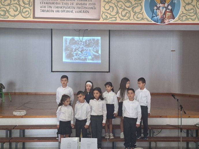 Με αφορμή την επέτειο του "ΟΧΙ", τα παιδιά του σχολείου μας παρουσίασαν μια συγκινητική, ενδοσχολική, εκδήλωση. Με έπαρση της σημαίας, τραγούδια, ποιήματα και θεατρικά δρώμενα και χορούς, μας ταξίδεψαν πίσω στον χρόνο, στα ηρωικά γεγονότα του 1940 και μας θύμισαν τη σημασία της ελευθερίας και της πατρίδας.Τα παιδιά μας τόνισαν ότι τα μηνύματα της της εθνικής επετείου πρέπει να τα τιμούμε κάθε μέρα με τη στάση και συμπεριφορά μας. Η 28η Οκτωβρίου μας δίδαξε την αντίσταση σε ρατσιστικές στάσεις, την αντίσταση στη εξαθλίωση ανθρώπων, την αντίσταση στην ασχήμια και την αξία της δύναμης της φωνής της αντίστασης και της αλήθειας.