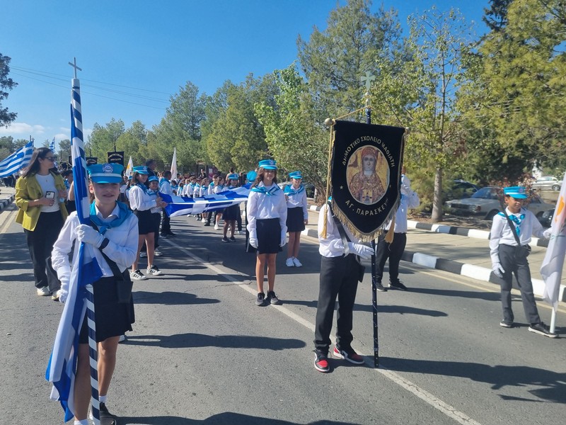 Στις 28 Οκτωβρίου 2022 οι μαθητές μας έλαβαν μέρος στην πρωινή δοξολογία για την εθνική επέτειο που φέτος οργάνωσε η κοινότητα Αγ. Βαρβάρας. Ακολούθως όλα τα παιδιά του σχολείου μας συμμετείχαν στην παρέλαση που έγινε στους δρόμους της κοινότητας.