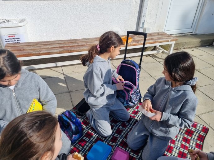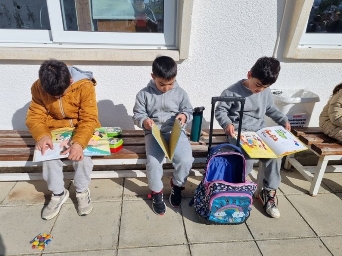 Παράλληλα παρουσιάστηκαν στα παιδιά οι “τσάντες διαβάσματος” που θα “κυκλοφορούν” κατά τη διάρκεια την διαλειμμάτων και τα παιδιά θα μπορούν να δανείζονται βιβλία και να τα διαβάζουν.