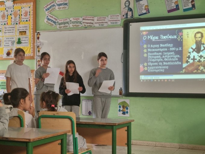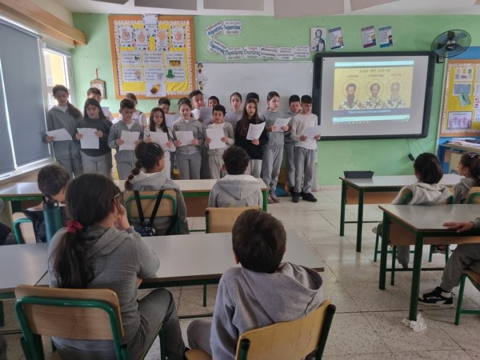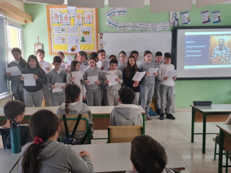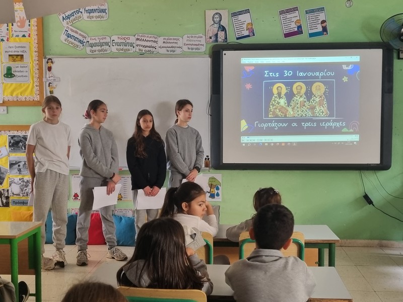 Στην όμορφη γιορτή που ετοίμασαν τα παιδιά της Ε' και Στ' τάξης, μάθαμε για τους Τρεις Ιεράρχες, τον Μέγα Βασίλειο, τον Ιωάννη τον Χρυσόστομο και τον Γρηγόριο τον Θεολόγο, τρεις σπουδαίους δασκάλους και αγίους της Ορθόδοξης Εκκλησίας. Τα παιδιά μας ταξίδεψαν στην εποχή τους Τριών Ιεραρχών, παρουσιάζοντας το πολύτιμο έργο τους. Μάθαμε πώς αυτοί οι φωτισμένοι άνδρες αφιέρωσαν τη ζωή τους στη διάδοση της χριστιανικής πίστης και στην καλλιέργεια της παιδείας συνενώνοντας την αρχαία ελληνική γραμματεία με τη Χριστιανική θρησκεία. Με τα συγγράμματά τους, τις ομιλίες τους και την αγάπη τους για τη γνώση, βοήθησαν να διαδοθεί το Ευαγγέλιο και να δημιουργηθούν σχολεία και βιβλιοθήκες, προσφέροντας μόρφωση σε όλους. Οι Τρεις Ιεράρχες μας δίδαξαν ότι η πίστη και η γνώση είναι αλληλένδετες και ότι η αληθινή σοφία πηγάζει από την αγάπη για τον Θεό και τον συνάνθρωπο. Γι' αυτό και τους τιμούμε ως προστάτες των γραμμάτων και της παιδείας, καθώς το έργο τους αποτελεί φωτεινό παράδειγμα για όλους μας.