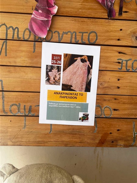 Τα παιδιά της Γ' τάξης του σχολείου μας στα πλαίσια του μαθήματος της Ιστορίας δημιούργησαν ένα μικρό μουσείο με αντικείμενα από το παρελθόν τους. Τα αντικείμενα αυτά λειτούργησαν ως πηγές για να διηγηθούν ιστορίες του παρελθόντος τους. Έφτιαξαν μικρές λεζάντες με στοιχεία και έμαθαν πως κάθε αντικείμενο σε μουσείο έχει μια μικρή επεξήγηση βασικών στοιχείων για αυτό. Η δράση αυτή λειτουργεί μέσα στα πλαίσια της ανάπτυξης της ιστορικής έρευνας και ανάκριση των πηγών στην Ιστορία. Το μουσείο των παιδιών επισκέφθηκαν οι άλλες τάξεις καθώς και οι γονείς των παιδιών που ήρθαν για ενημέρωση στο σχολείο.