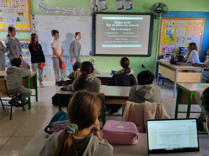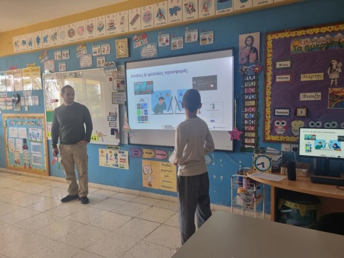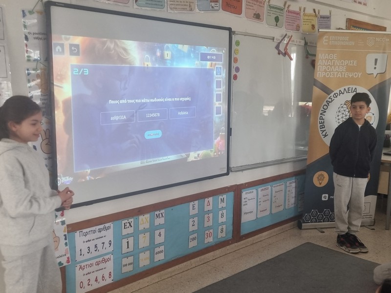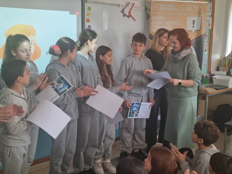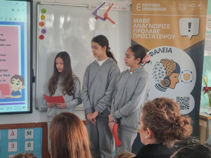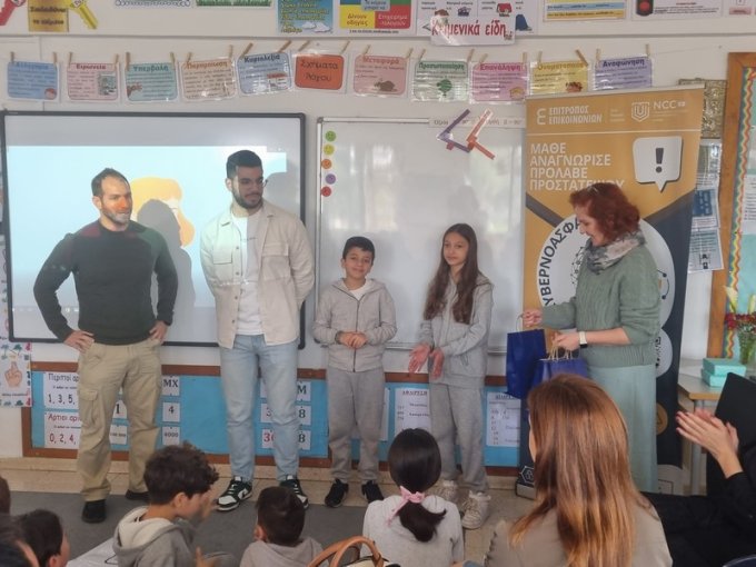 Την Τετάρτη, 4 του Φλεβάρη 2026, τα παιδιά της Στ΄τάξης παρουσίασαν το βίντεο που ετοίμασαν με τίτλο «Σκέψου διπλά! Έχε τα μάτια σου ανοικτά», στον Διαγωνισμό για την Παραγωγή Βίντεο για την Ασφάλεια στο Διαδίκτυο, στο Ολυμπιακό Μέγαρο Λευκωσίας. Τα παιδιά επέλεξαν τη θεματική για αντιμετώπιση της παραπληροφόρησης και των ψευδών ειδήσεων. Έγραψαν το σενάριο, υποδύθηκαν ρόλους, έλαβαν μέρος στην βιντεογράφηση και στο μοντάζ και ετοίμασαν το βίντεό τους. Σκοπός τους να μας βοηθήσουν να προστατεύσουμε τον εαυτό μας από τους κινδύνους που περικλείουν τα fake news και τα deep fake. Τα παιδιά μας αφού παρουσίασαν το βίντεό τους και δέχτηκαν ερωτήσεις από την κριτική επιτροπή, κατάφεραν να ισοψηφίσουν με ακόμα ένα δημοτικό σχολείο και να μοιραστούν από κοινού το πρώτο βραβείο! Πολλά πολλά συγχαρητήρια στα παιδιά μας!! Το βίντεο παρουσιάστηκε στους γονείς και στα πλαίσια ημερίδας που οργανώθηκε στο σχολείο για την ασφάλεια στο Διαδίκτυο.
